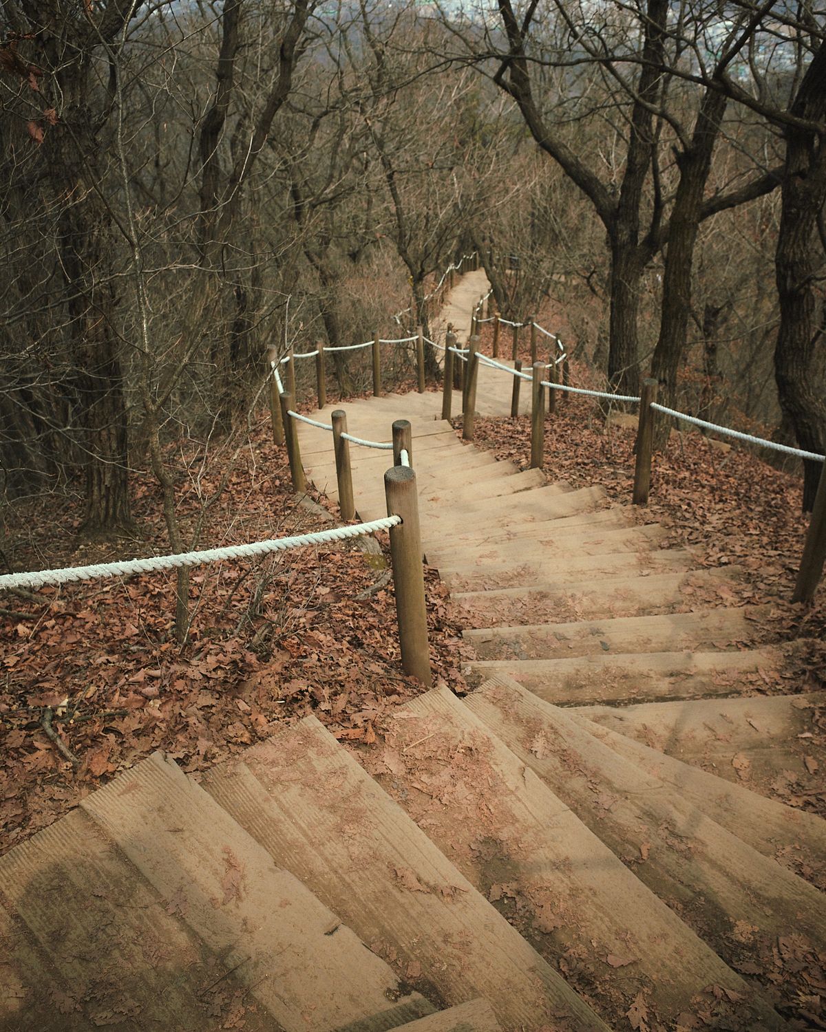 매봉에서 옛골로 내려간다. 하산은 짧고 급하다. 무릎에 하중이 실리기 시작하는 구간. 종아리가 반응하고, 발목이 일한다. 이 하강의 충격이 바로 — 사우나가 필요한 이유가 된다.